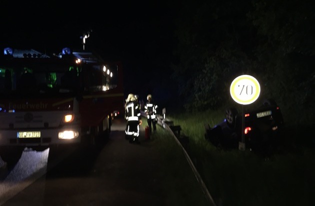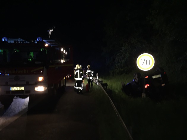 In der Auffahrt zur Autobahn A2 in Gelsenkirchen Buer hat der Fahrer in einer lang gezogenen Kurve die Kontrolle über sein Fahrzeug verloren. Hierbei überschlug sich der PKW und landete im Grünstreifen der Auffahrt. Bei Eintreffen der Feuerwehr hatten sich die beiden Fahrzeuginsassen bereits aus dem Fahrzeug befreit. Beide Personen, die augenscheinlich nur leicht verletzt waren, wurden dem Rettungsdienst übergeben. Insgesamt waren 16 Einsatzkräfte mit 6 Fahrzeugen eingesetzt.
