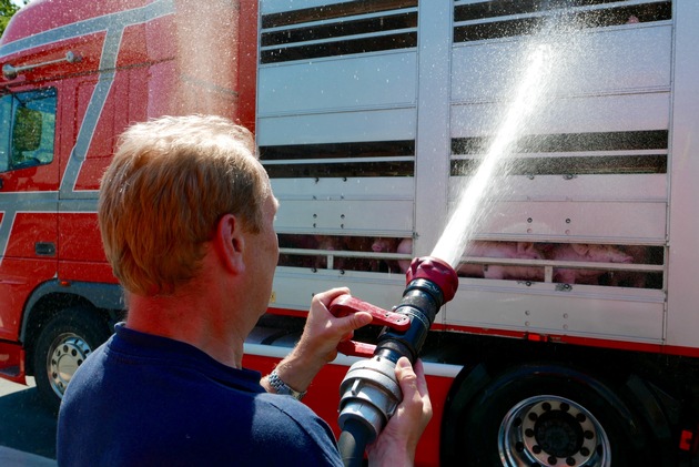 FW-GE: Schweine in Not - Feuerwehr Gelsenkirchen hilft 500 Schweinen in überhitztem Tiertransporter