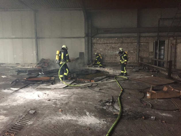 Die Feuerwehr Gelsenkirchen wurde heute Vormittag erneut zu einem Brand in die leerstehende Lagerhalle in der Kesselstraße gerufen. In der Halle brannten ca. 5x5m Unrat. Der Brand konnte schnell unter Kontrolle gebracht werden, allerdings zogen sich die Lüftungsmaßnahmen aufgrund der Größe des Objektes einige Zeit hin.