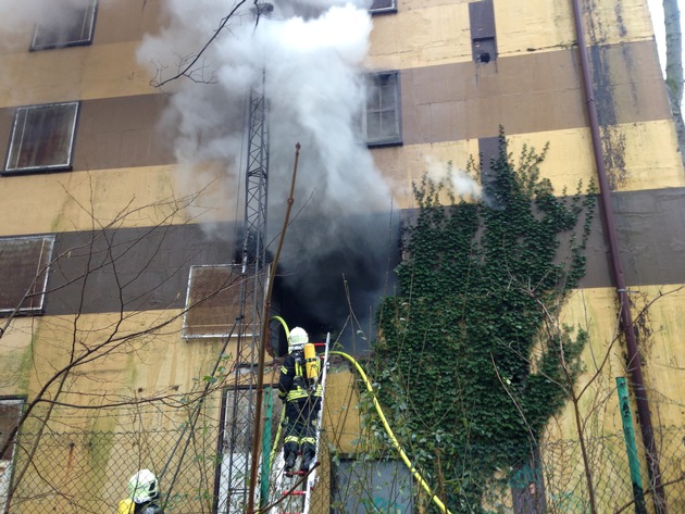 Gleich mehrere Anrufer meldeten um 15:28 Uhr eine Rauchentwicklung aus einem alten Bunker an der Emmastraße. 2 Löschzüge der Berufsfeuerwehr rückten daraufhin nach Bulmke Hüllen aus. Dichter Brandrauch quoll aus dem Bunker, als die ersten Einheiten in die Emmastraße einbogen. Gewaltsam mussten sich die Einsatzkräfte Zugang zu dem Gebäude verschaffen, was seitens der Stadt gegen unbefugtes Betreten gesichert worden war. Über die Gebäude Vorder- und Rückseite konnte die Brandbekämpfung eingeleitet werden. Mehrere Trupps unter Atemschutz drangen in das Gebäude vor. Auf Grund der starken Wärmeentwicklung, gestaltete sich das Vorgehen aber äußerst schwierig. Mit mehreren Lüftern wurde der Brandrauch aus dem verwinkelten Gebäude gedrückt. Weil schnell klar wurde, dass mit einer längeren Einsatzdauer zu rechnen ist, wurden die Löschzüge Altstadt, Ückendorf und Erle Süd, der freiwilligen Feuerwehr, ebenfalls zur Einsatzstelle entsandt. Gut zwei Stunden nach der Alarmierung konnte "Brand unter Kontrolle" gegeben werden und mit den Nachlöscharbeiten begonnen werden. Die Polizei leitete die Ermittlungen zur Brandursache ein.