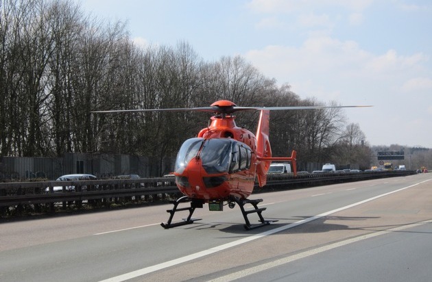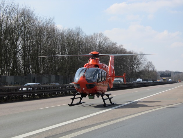 FW-GE: Verkehrsunfall mit drei Verletzten auf der Bundesautobahn A 42 Rettungshubschrauber landet auf gesperrten Autobahn