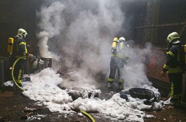 FW-GE: Brand in einer leerstehenden Lagerhalle in Buer