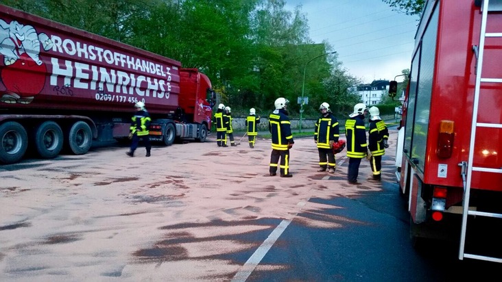Ein undichter Dieseltank hat am Mittwochabend für einen Feuerwehreinsatz gesorgt. Auf der Straße "Auf der Reihe" in Rotthausen liefen große Mengen Diesel aus dem Tank eines Sattelschleppers. Der Tank konnte schnell abgedichtet werden. Um den zuvor ausgelaufenen Kraftstoff aufzunehmen, waren jedoch 21 Sack Ölbindemittel nötig. Die Einsatzkräfte der Feuerwache Altstadt und vom Löschzug Ückendorf der Freiwilligen Feuerwehr waren über drei Stunden im Einsatz. Die Fahrbahn wurde anschließend durch Straßen NRW mit einer Kehrmaschine gereinigt.