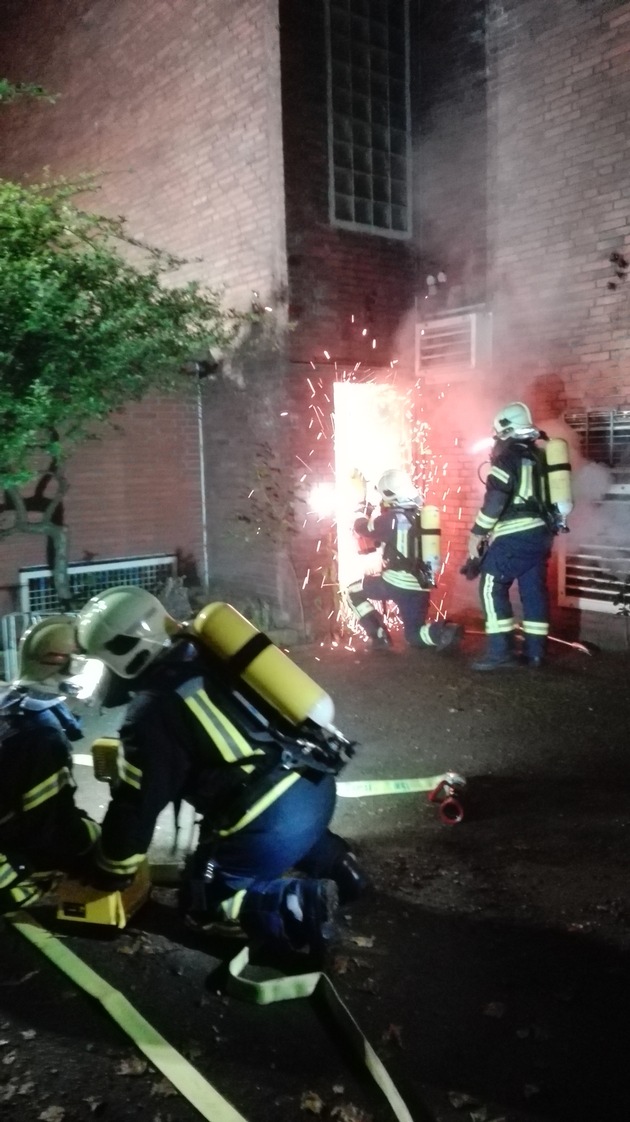 Kurz nach Mittnacht wurden die Einsatzkräfte der Feuerwehr Gelsenkirchen zu einem Brand im leerstehenden GAFÖG-Gebäude gerufen. Beim Eintreffen der ersten Kräfte war die Lage unübersichtlich, da dichter Rauch aus vielen Öffnungen des Gebäudes nach außen drang und der Brandherd nicht genau lokalisiert werden konnte. Dies hatte auch zur Folge, dass weitere Kräfte der Freiwilligen Feuerwehr nachalarmiert werden mussten. Neben der Weitläufigkeit des Gebäudes war auch die Zugänglichkeit zum Objekt eine Herausforderung für die Feuerwehr, war es doch gegen Einbruch und Vandalismus so gut geschützt, dass auch die Einsatzkräfte ihr ganzes Repertoire an Türöffnungsmöglichkeiten nutzen musste. Eine Tür musste sogar mit einem Winkelschleifer geöffnet werden. Weitere Entlüftungsöffnungen wurden mittels Rettungssäge geschaffen. Das Gebäude wurde dann von drei Zugängen aus erkundet. Durch die massive Rauchausbreitung im Gebäude war ein Vorgehen der Wehrmänner nur mit Atemschutz möglich, mehrere Wärmebildkameras erleichterten die Orientierung in dem verwaisten aber total verqualmten Bauwerk. Zehn Trupps mit fünf Strahlrohren waren im Innenangriff eingesetzt. Nach längerer aufwendiger Erkundung und Löschmaßnahmen im östlichen Zugangsbereich konnte gegen 3:00 Uhr "Brand unter Kontrolle" gegeben werden. Gegen 4:30 waren alle Glutnester bekämpft und die Einsatzkräfte konnten die Einsatzstelle verlassen. Es kam niemand zu Schaden. Insgesamt sind 50 Einsatzkräfte der Feuerwehr Gelsenkirchen im Einsatz darunter auch der Löschzug Horst und der Löschzug Ückendorf der Freiwilligen Feuerwehr Gelsenkirchen. Die Polizei hat bereits die Ermittlungen zur Brandursache aufgenommen.