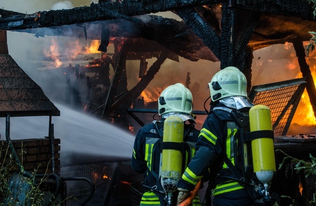 FW-GE: Eine brennende Gartenlaube sorgt für hohe Rauchsäule über Beckhausen