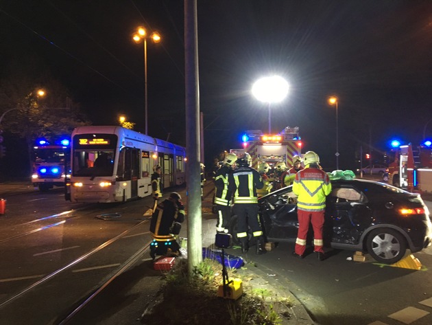 Gegen 00:49 Uhr wurde der Feuerwehr über der Polizei ein Verkehrsunfall zwischen einer Straßenbahn und einem PKW im Ortsteil Buer gemeldet. An der Einsatzstelle kam es zu einem Zusammenstoß zwischen einer Straßenbahn und einem PKW. In dem PKW befanden sich drei Personen, eine Person konnte das Fahrzeug verlassen, zwei weitere Personen konnten das Fahrzeug aufgrund des Zusammenpralls nicht eigenständig verlassen. Die Einsatzkräfte leiteten eine technische Rettung ein. Dazu musste das Dach vom PKW entfernt werden um die Personen aus dem PKW befreien zu können. Zusätzlich musste die Einsatzstelle ausgeleuchtet und die Fahrbahn gesperrt werden. Während des Einsatzes wurden die betroffenen Personen durch den Notarzt medizinisch versorgt. Die drei verletzten Personen sind in die umliegenden Krankenhäuser zur weiteren Versorgung durch den Rettungsdienst transportiert worden. In der Straßenbahn waren keine weitere verletzte Personen. An der Einsatzstellen waren insgesamt 24 Einsatzkräfte der Wache Buer und Hassel beteiligt. Um 2:40 Uhr war der Einsatz beendet.