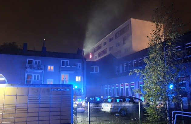 Um 18.35 Uhr wurde die Leitstelle der Feuerwehr Gelsenkirchen durch mehrere Anrufe auf einen Brand in den Räumlichkeiten einer Sparkasse im Stadtteil Gelsenkirchen-Erle aufmerksam gemacht. Auf Grund der Schilderungen der Anrufer erfolgte eine entsprechende Alarmierung der zuständigen Feuerwache Buer und ergänzend der Feuerwache Hassel, sowie Altstadt. Ebenfalls wurden Einheiten der Löschzüge 13 und 17 der Freiwilligen Feuerwehr alarmiert. Die erst eintreffenden Einheiten gingen zur Brandbekämpfung mit 3 Trupps und C-Strahlrohren vor. Zeitgleich erfolgte die Evakuierung der beiden angrenzenden Gebäude. Schnell konnte der Brandherd lokalisiert und im Bereich des Kassenschalters gelöscht werden. Abschließend wurde das Gebäude durch weitere Trupps kontrolliert und quergelüftet. Die Einsatzstelle wurde der Polizei zu weiteren Ermittlungen übergeben.