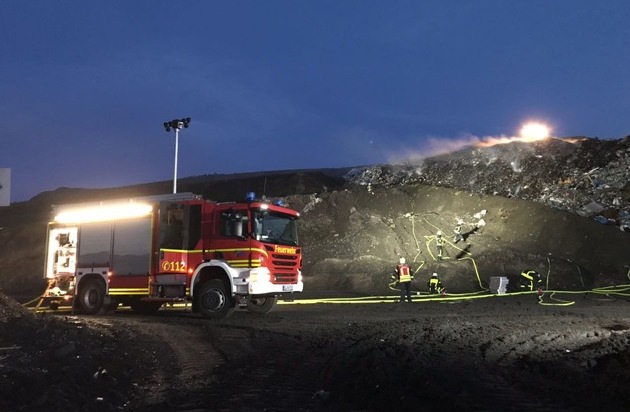 FW-GE: Nächtlicher Feuerwehrinsatz auf der Zentraldeponie im Gelsenkirchener Emscherbruch zieht sich bis in den Sonntagvormittag.