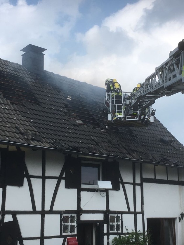 Um 13:45 wurde die Feuerwehrleitstelle durch mehrere Notrufe über einen Brand in einem Wohnhaus informiert. Entsprechend entsandte die Feuerwehrleitstelle 3 Löschfahrzeuge, 2 Drehleiter, 1 Einsatzleitwagen und einen Rettungswagen zur Einsatzstelle. Bei Eintreffen der Einsatzkräfte konnte ein Dachstuhlbrand bestätigt werden. Zu diesem Zeitpunkt hatten schon alle Bewohner das Haus verlassen, so dass die Feuerwehr die Brandbekämpfung direkt über eine Drehleiter und Trupps im Innenangriff Einleiten konnte. Das Feuer konnte schnell gelöscht werden. Allerdings mussten viele Glutnester beseitigt werden. Hierdurch war die Feuerwehr längere Zeit gebunden. Beim Rettungsdienst wurden 2 Erwachsen und 2 Kinder vorstellig die über Rauchgasintoxikation klagten. Der zusätzlich herbeigerufene Notarzt behandelte die Personen, die anschließend vorsichtshalber ins Krankenhaus gebracht wurden. Insgesamt waren 25 Einsatzkräfte mit 10 Einsatzfahrzeugen an der Einsatzstelle. Die Einsatzdauer betrug 2,5 Stunden