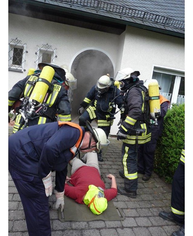 Niedereimer. Zu einer Brandschutzübung im ehemaligen Pfarrhaus rückte kürzlich die Löschgruppe Niedereimer aus. Dort leben behinderte Menschen in einer Außenwohngruppe der Caritas.