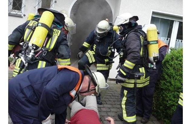 Alljährlich findet solch eine Übung mit den im Dorf integrierten behinderten Menschen der Außenwohngruppe im Pfarrhaus statt. Durch diese Art der Übung möchte man die Angehörigen der Wohngruppe sensibilisieren und ihnen die Arbeit der Feuerwehrleute näher bringen. Nach dem "Einsatz" durften die Menschen mit Handicap selbst einmal das Strahlrohr halten und eine Runde mit dem Feuerwehrfahrzeug fahren.