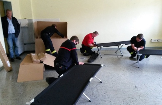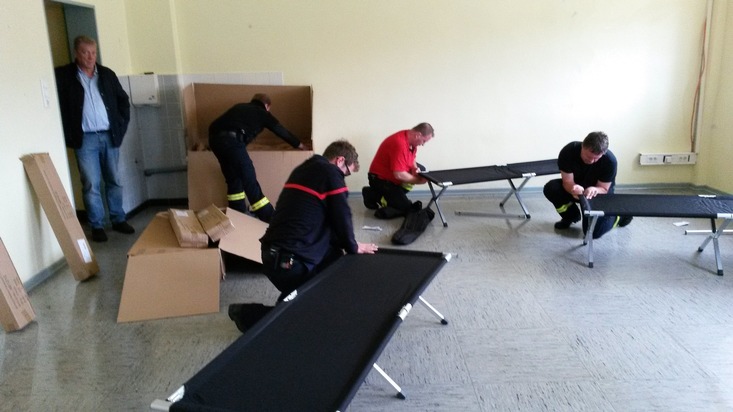 Die Feuerwehr der Stadt Arnsberg hat erneut für die Einrichtung der zusätzlichen Kapazitäten gesorgt und binnen zwei Stunden die Schlafmöglichkeiten für die angekündigten Flüchtlinge geschaffen. Der Leiter der Arnsberger Feuerwehr, Bernd Löhr, sowie der zuständige Fachbereichsleiter der Stadtverwaltung, Helmut Melchert, standen in engem telefonischem Kontakt zu Bürgermeister Hans-Josef Vogel. Vorrangiges Ziel war es, die Obdachlosigkeit der Menschen zu verhindern, welche aus der Erstaufnahmeeinrichtung des Landes in Dortmund nach Arnsberg unterwegs waren. Die Bezirksregierung Arnsberg muss durch den seit Tagen hohen Zustrom der Flüchtlinge für die menschenwürdige Unterbringung der Asylsuchenden im Land sorgen.