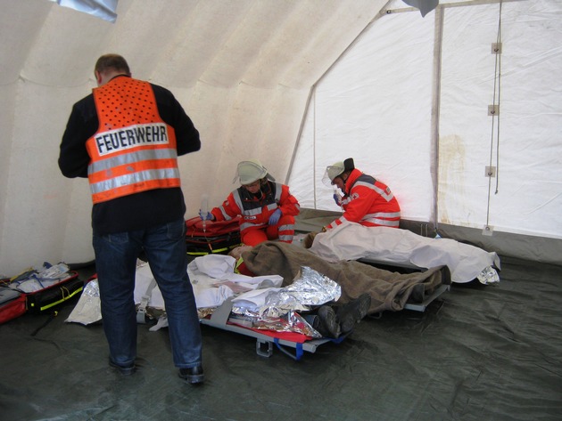FW-AR: Verpuffung bei der Firma WEPA fordert neun Verletzte - Einsatzkräfte üben für den Ernstfall