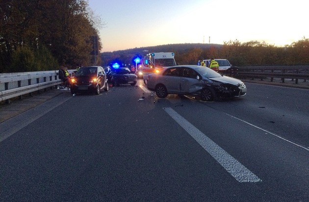 Arnsberg. Auf der BAB 46 kam es am heutigen Nachmittag in Höhe des Kilometers 53 nahe der Abfahrt Neheim/Voßwinkel in Fahrtrichtung Werl zu einem schweren Verkehrsunfall, der zwei Schwerverletzte forderte.