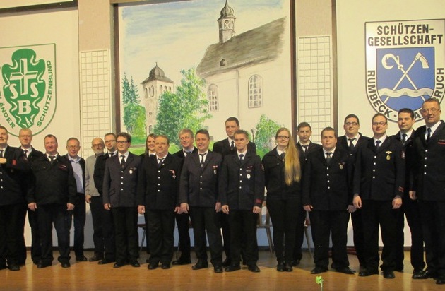 Geehrt wurden für 10 Jahre aktiven Feuerwehrdienst Bastian Pöttgen, Dominik Weber, Marvin Löhr, Carolin Frank, Steffen Klauke und Jens Masseck. Das Feuerwehrehrenzeichen des Landes Nordrhein-Westfalen in Silber für 25-jährigen aktiven Feuerwehrdienst erhielt Peter Henselek. Das Ehrenzeichen in Gold für 35 Jahre Feuerwehrzugehörigkeit wurde Jörg Flüchter und Manfred Weber verliehen. Die Auszeichnung des Verbandes der Feuerwehren in NRW für 40-jährige Treue zur Feuerwehr bekamen Gottfried Sommer und Wolfgang Kriehn, Klaus Göckeler erhielt die Auszeichnung für 50 Jahre Feuerwehrdienst. Schließlich wurden Manfred Köstens und Hans Reinhard Wisnieski für ihre 60-jährige Treue zur Feuerwehr ausgezeichnet. In die Ehrenabteilung übernommen wurde Wolfgang Kriehn.