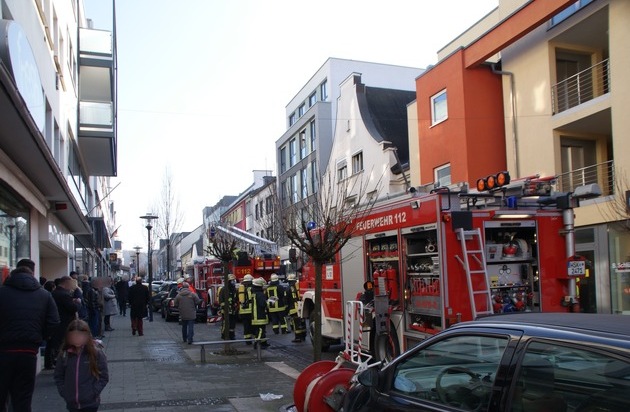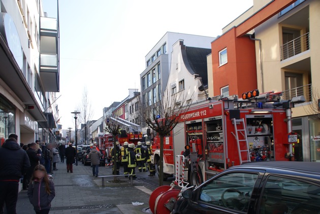 Beim Eintreffen der Kräfte war eine Rauchentwicklung aus dem Fenster einer Dachgeschosswohnung zu erkennen. Mit dem Schlüssel eines Hausbewohners verschafften sich die Rettungskräfte Zugang zum Gebäude und gingen unter Umluft unabhängigem Atemschutz zum Brandherd vor. Parallel dazu wurde die Drehleiter in Stellung gebracht, um einen zweiten Rettungs- und Angriffsweg sicher-zustellen. Diese Vorgehensweise ermöglicht eine schnelle und gezielte Rettung. Zu diesem Zeitpunkt ging die Feuerwehr davon aus, dass sich noch Personen in der Brandwohnung aufhielten. Eine Wasserversorgung über einen sogenannten Unterflurhydranten wurde ebenfalls aufgebaut, um genug Löschwasser zu Verfügung zu haben.