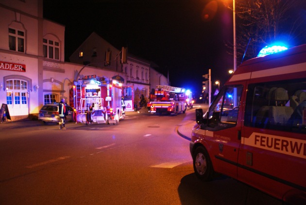 Nach dem Eintreffen der Einsatzkräfte wurden die Hausbewohner zunächst in Freie gebracht und durch den Rettungsdienst betreut. Im Zuge der Erkundung des Gebäudes von außen durch den Einsatzleiter war nichts festzustellen, was auf ein Brandereignis hindeutete. Um auch den Innenbereich des Möbelgeschäfts untersuchen zu können, wurde eine Tür mit Spezial-Werkzeug geöffnet, und ein Einsatztrupp unter schwerem Atemschutz überprüfte das Gebäude. Da jedoch auch hier nichts Ungewöhnliches festzustellen war, konnte die Feuerwehr Entwarnung geben.