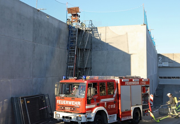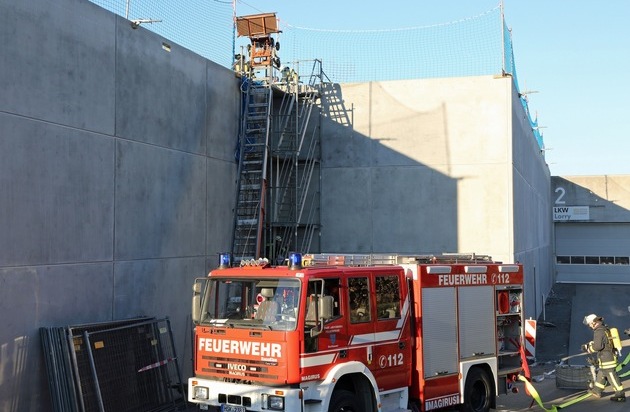 FW-AR: Brand auf Neubau-Dach bei Sauerland-Spanplatte wurde mit Pulverlöscher schnell gelöscht