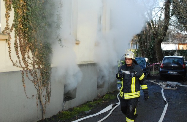 Arnsberg. Zur Mittagszeit am Heiligen Abend wurde die Feuerwehr Arnsberg mit den Hauptwachen Arnsberg und Neheim sowie dem Löschzug Arnsberg zu einem Einsatz an der Wetterhofstraße in Arnsberg (Nähe Reno de Medici) gerufen. Den ersten Einsatzkräften bot sich ein Drei-Familien-Haus, an dem es aus sämtlichen Fenstern und Türen bis hoch zum Dachstuhl qualmte. Mehrer Trupps unter Atemschutz verschafften sich sofort einen Überblick über den Einsatz und suchten nach dem Brandherd. Zum Glück hatten sich mit dem Eintreffen der Feuerwehr bereits die Bewohner des Hauses selbstständig ins Freie gebracht. Zwei Personen wurden jedoch mit Verdacht auf Rauchgasvergiftung vom Rettungsdienst ins Krankenhaus gebracht.