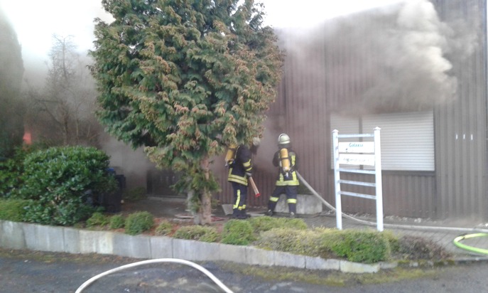 FW-AR: Brand einer Lagerhalle verlangt Großeinsatz von der Feuerwehr: 140 Wehrleute verhindern Übergreifen der Flammen