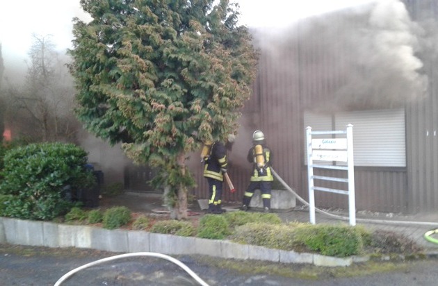 FW-AR: Brand einer Lagerhalle verlangt Großeinsatz von der Feuerwehr: 140 Wehrleute verhindern Übergreifen der Flammen
