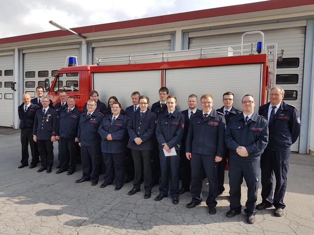 Lehrgangsleiter Brandoberinspektor Stefan Beule konnte zum Abschluss des Lehrgangs den zehn Teilnehmern zur bestandenen Prüfung gratulieren. Unterstützt wurde Stefan Beule durch ein seit Jahren eingespieltes Team von insgesamt 14 Ausbildern, die für diesen Lehrgang insgesamt 284 ehrenamtliche Ausbildungsstunden leisteten.