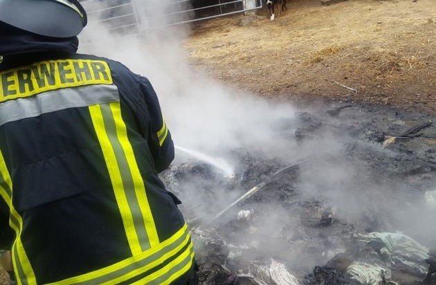 Fast zeitgleich erreichten die letzten beiden Einsätze des Tages die Leitstelle der Feuerwehr. An einem Forstweg in Arnsberg-Oeventrop war gegen 19.21 Uhr brennender Sperrmüll auf einer Länge von rund fünf Metern gemeldet worden. Da das Feuer in unmittelbarer Nähe zu einem Stall ausgebrochen war, rückte die Wehr mit entsprechendem Aufgebot an. Kräfte der Wache Arnsberg löschten den brennenden Müll. Der wurde zudem noch mit Werkzeug auseinander gezogen, um besser an die verbliebenen Glutnester zu kommen. Nach rund 30 Minuten war der Einsatz wieder beendet.