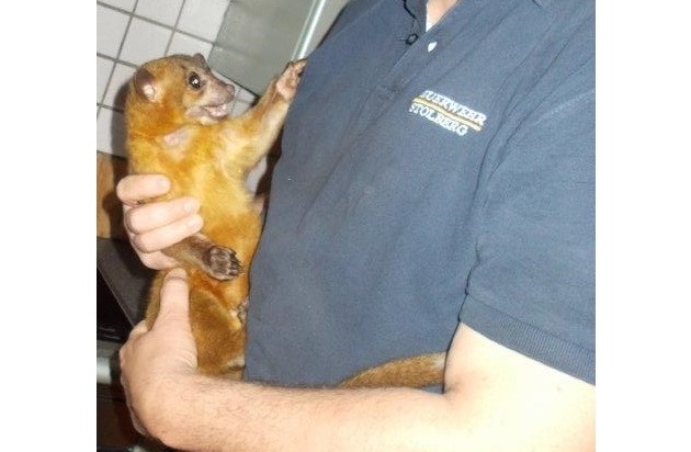 Bei der Übergabe an den Besitzer stellte sich dann heraus, dass es sich nicht um einen Affen sondern um einen Wickelbären handelte. So gab es für unsere Kräfte eine Nachhilfestunde in Artenkunde gratis dazu!