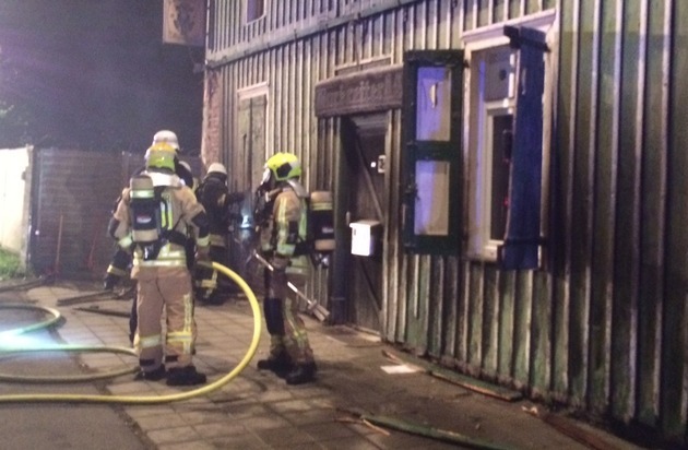 Zu einem Feuereinsatz und einem Gefahrstoffeinsatz mussten die Einsatzkräfte der Feuerwehr der Kupferstadt Stolberg in der Nacht zum Freitag ausrücken. Ein PKW-Fahrer informierte die Einsatzzentrale der Feuer- und Rettungswache gegen 23.26 Uhr über ein brennendes Haus an der Straße Breiniger Berg in Höhe des Parkplatzes Waldschänke. Unter Einsatzleitung von Amtsleiter Andreas Dovern rückten die Kräfte des 1. (Feuerwache) und 3. Löschzuges (Löschgruppen Breinig und Venwegen) sowie der Löschgruppe Mausbach aus. Bei Eintreffen an der Einsatzstelle brannte die Holzverkleidung des Hauses an mehreren Stellen im unteren Bereich. Sofort wurde ein Löschangriff mit zwei C-Rohren eingeleitet und die Einsatzstelle mit Scheinwerfern von der Drehleiter ausgeleuchtet. Zur Kontrolle, dass sich keine Personen in dem Haus befinden und die Flammen nicht übergegriffen haben, verschaffte sich ein Trupp unter Atemschutz Zugang zum Innenbereich und beging das komplette Haus. Nachdem die Flammen an der Holzfassade gelöscht waren, wurde die Vertäfelung mit einer Rettungssäge geöffnet und die Verkleidung entfernt. Nach Abschluss der Maßnahmen wurde die Einsatzstelle der Polizei übergeben. Als die Kräfte gerade vom Breiniger Berg abrücken wollten, erreichte gegen 0.54 Uhr ein weiterer Notruf die Feuerwehr. Ein Industriebetrieb aus dem Ortsteil Atsch meldete einen Gasaustritt im Firmengelände. Aufgrund des Notrufes wurden neben der Feuerwache der 2. Löschzug (Löschgruppen Atsch, Büsbach, Donnerberg, Mitte und Münsterbusch), die Löschgruppe Mausbach, die Gefahrstoff-Gruppe, Rettungsdienst und Notarzt, sowie der Fachberater Chemie der StädteRegion Aachen alarmiert. Eine erste Erkundung von Amtsleiter Andreas Dovern ergab einen Austritt von einem Reinigungsmittel auf Lösemittelbasis. Die Freisetzung fand ausschließlich in einem geschlossenen und nach außen hin abgekapseltem Raum statt. Eine Freisetzung nach außen fand nicht statt. Da es sich bei dem Lösungsmittel um einen Gefahrstoff handelt, wurde unter entsprechenden Sicherheitsvorkehrungen gearbeitet. Ein mit Vollschutzanzügen ausgerüsteter Trupp ging in den Raum vor und führte Messungen durch, die nur geringe Werte ergaben. Nachdem die Anlage abgeschaltet wurde, konnte die Maßnahmen der Feuerwehr eingestellt werden. Die Beurteilung vom Fachberater Chemie, Dipl.-Ing. Hartmut Prast, ergab, dass zu keinem Zeitpunkt eine Gefährdung von Bevölkerung und Umwelt bestanden habe. Kreisbrandmeister Bernd Hollands verschaffte sich ebenfalls vor Ort ein Bild der Lage.