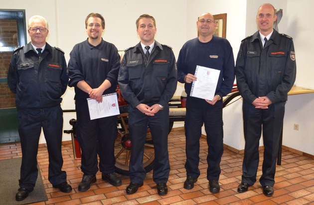 Zum neuen Stadtjugendfeuerwehrwart wurde am Donnerstagabend Unterbrandmeister Carsten Nellißen ernannt. Amtsleiter Andreas Dovern übergab Nellißen die Ernennungsurkunde vor den anwesenden Jungfeuerwehrleuten auf ihrem Übungsabend. Stadtbrandinspektor Dovern führte in seiner kurzen Ansprache aus, dass er von einer weiteren sehr guten Zusammenarbeit ausgehe und fest davon überzeugt sei, dass Wehrleitung und Jugendwarte die richtige Personalwahl getroffen habe. Marco Veeser, bisheriger Leiter der Jugendfeuerwehr, hatte sein Amt nach rund drei Jahren aus persönlichen Gründen abgeben müssen. Seit diesem Zeitpunkt wurde die Jugendfeuerwehr bereits kommissarisch von Carsten Nellißen geführt. Als neuer stellvertretender Stadtjugendfeuerwehrwart wurde Brandinspektor Ralf Welsch ernannt, der ebenfalls seine Ernennungsurkunde erhielt.