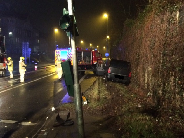 Ein leicht verletzter Autofahrer und hoher Sachschaden an einem Fahrzeug sowie eines Ampelmastes sind die Bilanz eines Verkehrsunfalles am Samstagabend im Bereich der Kreuzung Europastraße/Schellerweg. Der Rüstzug und ein Rettungswagen der Feuerwehr Stolberg wurde gegen 18.05 Uhr zu dem Unfall alarmiert. Vor Ort wurde ein verletzter Autofahrer vom Rettungsdienst behandelt und ins Krankenhaus transportiert. Die Feuerwehr sicherte die Einsatzstelle gegen den fließenden Verkehr ab.