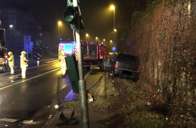 Ein leicht verletzter Autofahrer und hoher Sachschaden an einem Fahrzeug sowie eines Ampelmastes sind die Bilanz eines Verkehrsunfalles am Samstagabend im Bereich der Kreuzung Europastraße/Schellerweg. Der Rüstzug und ein Rettungswagen der Feuerwehr Stolberg wurde gegen 18.05 Uhr zu dem Unfall alarmiert. Vor Ort wurde ein verletzter Autofahrer vom Rettungsdienst behandelt und ins Krankenhaus transportiert. Die Feuerwehr sicherte die Einsatzstelle gegen den fließenden Verkehr ab.