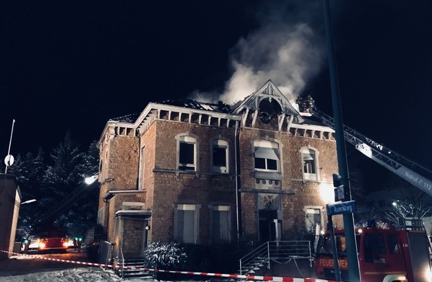 Vor Ort brannte der Dachstuhl des ehemaligen Gemeindeamts der Gemeinde Gressenich in voller Ausdehnung. Beim ersten vorgetragenen Löschangriff über den Innenraum verletzte sich der vorgehende Trupp durch herabfallende Deckenteile und musste zur ambulanten Behandlung einem Krankenhaus zugeführt werden.