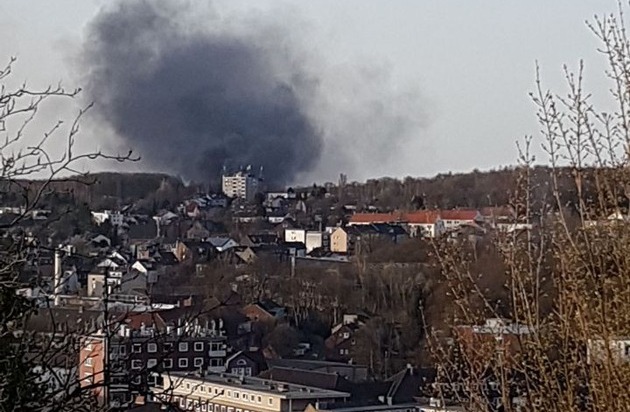 Zu einem Großbrand in einem Recyclinghof im Gewerbegebiet Steinfurt wurden die Einsatzkräfte der Feuerwehr der Kupferstadt Stolberg am Samstagabend um 18.58 Uhr alarmiert. Zahlreiche Notrufe über eine große schwarze Rauchwolke gingen aus dem gesamten Innenstadtgebiet in der Einsatzzentrale ein. Bereits von der Feuer- und Rettungswache aus war die Rauchsäule zu sehen. Aufgrund der vielen Notrufe wurden sofort der Löschzug der Feuerwache und der 2. Löschzug mit den Löschgruppen Atsch, Büsbach, Donnerberg, Mitte und Münsterbusch alarmiert. Beim Eintreffen der ersten Einsatzkräfte brannte im hinteren Bereich des Firmengeländes der dort eingelagerte Müll in einem offenen Müllbunker. Direkt hinter dem Müllbunker befindet sich das Gefahrstofflager der Firma, das jedoch durch eine hohe Brandschutzwand abgetrennt ist. Die Flammen schlugen meterhoch aus der etwa zu einem Drittel gefüllten 20 mal 15 Meter großen Müllbox. Sofort wurde von Einsatzleiter Andreas Dovern eine Riegelstellung mit mehreren Strahlrohren zum Gefahrstofflager und Gebäude geschaffen. Über einen Wasserwerfer und weitere Strahlrohre (insgesamt waren 4 C-Rohre, 1 B-Rohr und ein Wasserwerfer eingesetzt) wurde die direkte Brandbekämpfung vorgenommen. Aufgrund der starken Rauchentwicklung wurde sofort eine Warnung der Bevölkerung über die Warnapp "Nina", Rundfunkdurchsagen und über social media vorgenommen. Die Messeinheiten Nord und Süd der StädteRegion Aachen wurde ebenfalls zur Einsatzstelle beordert. Sie führten im Bereich der Einsatzstelle und in Richtung Eschweiler und Merzbrück sogenannte Messfahrten durch, bei denen laufend Schadstoffmessungen der Luft durchgeführt wurden. Neben der Warnung der Anwohner wurden auch zwei Supermärkte im Bereich der Rauchwolke über das Schadenereignis informiert und aufgefordert ihre Lüftungsanlagen abzuschalten. In einem Markt war es kurz vor der regulären Schließung zu einer Geruchswahrnehmung gekommen, von der aber keine Gefahr ausging. Da es durch die Rauchwolke zu Sichtbehinderung in der Steinfurt und auf der Eschweiler Straße kam, wurden diese zeitweise für den Verkehr gesperrt. Zur Besetzung der verwaisten Feuerwache und Sicherstellung des Grundschutzes im Stadtgebiet wurde der 3. Löschzug mit den Löschgruppen Breinig, Dorff und Venwegen eingesetzt und die dienstfreien hauptamtlichen Kräfte alarmiert. Nachdem die Flammen zum Teil niedergeschlagen waren, wurde von der betroffenen Firma ein Greifer eingesetzt, der den Müll aus der Box hob und auf dem Gelände zum Ablöschen verteilte. Diese Maßnahme zeigte große Wirkung. Das abfließende Löschwasser wurde auf dem Firmengelände aufgefangen und anschließend umweltgerecht entsorgt. Trotz einer deutlichen Geruchsbelästigung im Bereich der Einsatzstelle und der Zugrichtung der Rauchwolke, ergaben die Luftmessungen keine kritischen Werte. Die Messungen lagen unterhalb der Grenzwerte. Gegen 22 Uhr konnte Amtsleiter Dovern die Einsatzmaßnahmen zurückbauen. Die Flammen waren gelöscht. Um einen erneuten Brandausbruch vorzubeugen, verblieb die Löschgruppe Donnerberg bis nach Mitternacht in der Steinfurt. Neben Kreisbrandmeister Bernd Hollands, der sich vor Ort ein Bild über die Lage machte, waren die Betreuungsgruppe der Feuerwehr Eschweiler und der Gerätewagen Atemschutz der StädteRegion Aachen aus Würselen zur Unterstützung vor Ort. Insgesamt waren rund 150 Kräfte im Einsatz.