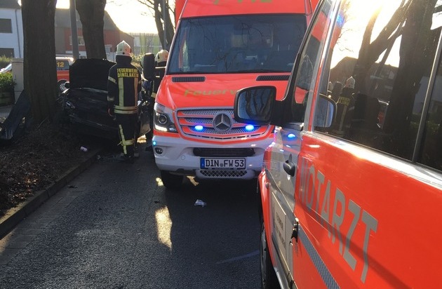 Heute gegen 08:00 Uhr wurden die Löschzüge Hauptwache und Stadtmitte zusammen mit dem Rettungsdienst zu einem schweren Verkehrsunfall zur Augustastraße in Dinslaken alarmiert. An der Einsatzstelle fanden die Einsatzkräfte ein schwer beschädigtes Fahrzeug vor. Die erste Meldung, dass eine Person noch im Fahrzeug eingeklemmt ist, hat sich vor Ort nicht bestätigt. Die Fahrerin, wurde an der Einsatzstelle durch den Rettungsdienst medizinisch versorgt. Der ebenfalls alarmierte Rettungshubschrauber musste nicht zum Einsatz kommen. Die Feuerwehr hat das Fahrzeug gesichert, die Batterie abgeklemmt und den Brandschutz sichergestellt. Die Augustastraße wurde für die Dauer des Einsatzes kurzzeitig gesperrt. Gegen 08:45 Uhr war der Einsatz seitens der Feuerwehr beendet.