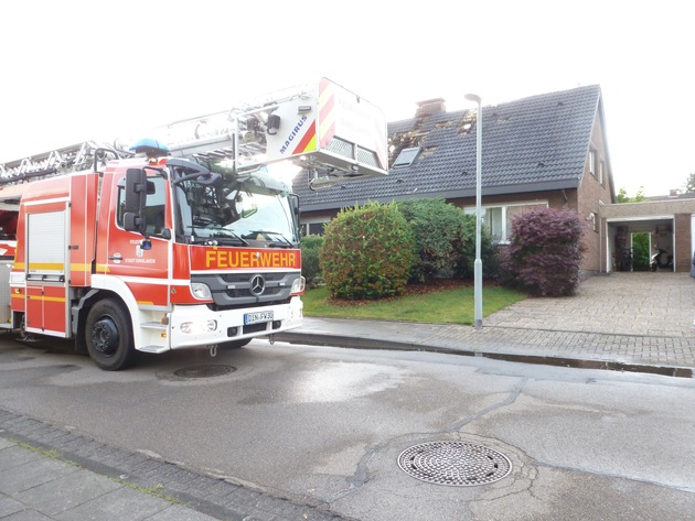 FW Dinslaken: Dachstuhlbrand nach Blitzeinschlag "Im Loosbusch"