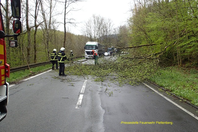 FW-PL: Große Weide fiel auf Allendorfer Straße in Plettenberg Leinschede und geplatzter Hydraulikschlauch an LKW