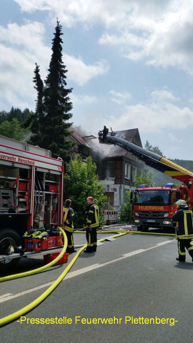 FW-PL: Plettenberger Feuerwehr bei Großfeuer in Herscheid im Einsatz