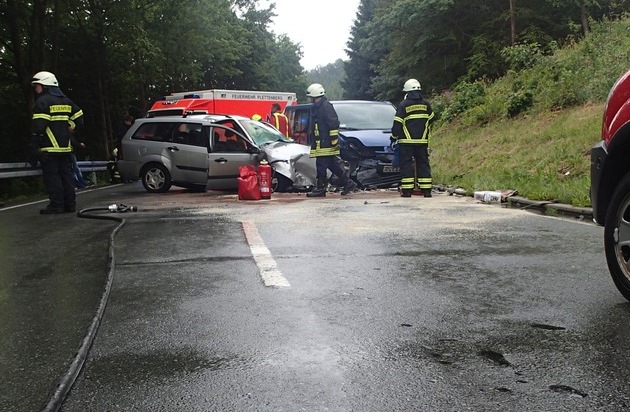 FW-PL: Frontalzusammenstoss auf der K8 in Plettenberg Erkelze. Vier PKW- Insassen, darunter ein Kind, zum Teil schwer verletzt