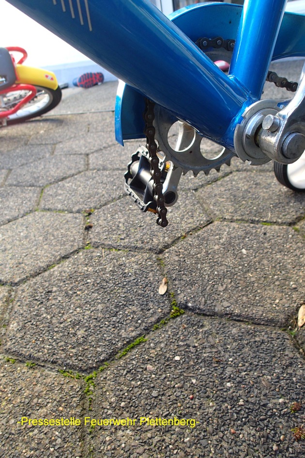 FW-PL: OT Stadtmitte. Alltägliche Spielsituation entwickelt sich zur Notlage. Feuerwehr befreit eingeklemmten Kinderdaumen aus Fahrradkette