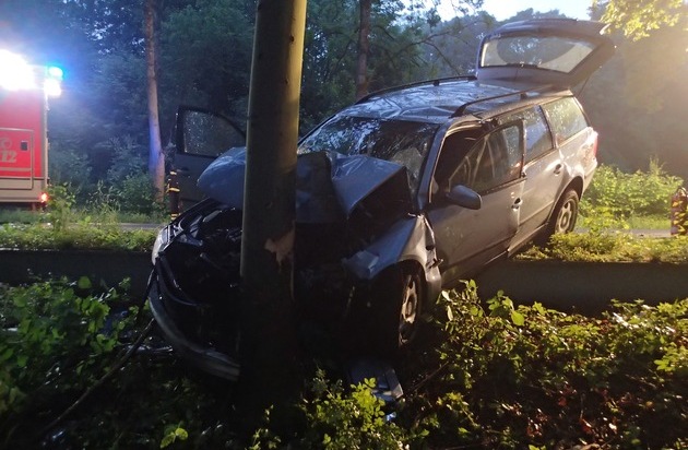 Ein schwerer Verkehrsunfall ereignete sich am heutigen frühen Morgen auf der Bundesstraße 236, circa 400 Meter hinter der Ortslage in Pasel. Ein ca. 30-jähriger Autofahrer prallte aus bislang ungeklärter Ursache mit seinem PKW frontal gegen einen Baum. Um kurz nach halb fünf ging der Notruf bei der Kreisleitstelle in Olpe ein. Diese entsendete unverzüglich einen Rettungswagen der Rettungswache in Finnentrop und informierte die zuständige Leitstelle des Märkischen Kreises in Lüdenscheid. Um 04:37 Uhr gab es Alarm auf der hauptberuflichen Feuer- und Rettungswache am Wall in Plettenberg. Das Hilfeleistungslöschfahrzeug, die Drehleiter und das Notarzteinsatzfahrzeug rückten umgehend aus. Als der Rettungswagen aus Finnentrop kurz vor den Einsatzkräften aus Plettenberg eintraf, hatte sich der Fahrer bereits selbstständig über die Beifahrerseite aus dem stark deformierten VW Passat befreit. Er wurde nach notärztlicher Behandlung mit dem Verdacht auf schwere Verletzungen ins Plettenberger Krankenhaus eingeliefert. Die B236 war während der Rettungsarbeiten und zur Unfallaufnahme durch die Polizei über eine Stunde lang gesperrt. Über die Schadenshöhe und Unfallursache kann die Feuerwehr keine Auskunft geben.