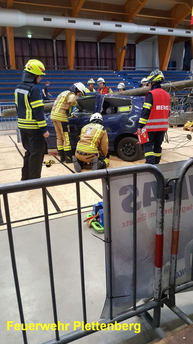 Seit 2012 gibt es in der Löschgruppe Ohle der ehrenamtlichen Feuerwehr Plettenberg das zurzeit aus 12 Einsatzkräften bestehende Team, kurz "TRT" (Technical Rescue Team). Am vergangenen Wochenende nahmen davon eine Frau und 5 Männer zum fünften Mal in Folge an der deutschen Meisterschaft der Unfallrettungsteams, welche in diesem Jahr in Osnabrück ausgetragen wurde, statt. Unterstützt wurden die Ohler Einsatzkräfte durch vier weitere Kameraden, welche als Zuschauer, aber auch als Reservecrew die Meisterschaft begleiteten. Die Rescue Challenge 2016, die Deutsche Meisterschaft in der Verkehrsunfallrettung, wird vom Dachverband der Rettungsteams, dem Verein zur Förderung des deutschen Unfallrettungswesens VFDU ausgerichtet. Seit 2006 gibt es die sogenannten Vergleichswettkämpfe, wobei der Weg auf das Siegerpodest dabei nicht unbedingt im Vordergrund steht. "Vielmehr ist es das Ziel, bei den Übungen und durch die Vernetzung mit anderen Teams Erlerntes umzusetzen und Neuerungen aufzugreifen", so Garvin Pestka von der Plettenberger Feuerwehr . Das sechsköpfige Team der Ohler setzte sich in diesem Jahr zusammen aus dem "Captain" Garvin Pestka, welcher verantwortlich für Entscheidungen und den Gesamteinsatz der Rettung war, einem sogenannten "Medic", diesen Part übernahm Kim Kaiser, welche für die medizinische Erstversorgung der eingeklemmten Person zuständig war, zwei sogenannten "Tools" (Christian König und Maximilian Rippe), welche die Rettungsgeräte vornahmen, sowie die Befreiung der Verunfallten durchführten und zwei "Safetys" (Jan Neumann und Tobias Arndt), wovon einer die medizinische Erstversorgung unterstützte und einer für die Sicherheit an der Einsatzstelle zuständig war. In diesem Jahr nahmen insgesamt 17 Einsatzteams aus Deutschland, Belgien, Luxemburg, Österreich und der Tschechischen Republik teil. Das Team aus Ohle hat mit dem 8.Platz in der Gesamtwertung ein hervorragendes Ergebnis erreicht. In der Einzelwertung der Einsatzleiter konnte ebenfalls ein guter 8.Platz gesichert werden. Im Bereich der "Medics" wurde sogar der 5.Platz in der Einzelwertung erreicht. Am Ende sind es Feinheiten, welche die Teams unterscheiden. Der Punktabstand zu den vorderen Plätzen war sehr gering, da alle Teams auf einem sehr hohen taktischen und technischen Niveau arbeiteten. Als Szenarien mussten am Wettbewerbswochenende übrigens zwei verschiedene Übungen unter den Augen der Wertungsrichter absolviert werden. Im sogenannten Rapid-Szenario galt es einen eingeklemmten und im kritischen Zustand befindlichen Unfallpatienten innerhalb von 10 Minuten aus seiner Zwangslage zu befreien. Im Standard-Szenario musste ein kreislaufinstabiler Verunfallter innerhalb von 20 Minuten aus seinem Fahrzeug befreit werden, wobei die Einklemmung bei diesem Szenario umfangreicher war als beim Rapid-Szenario. Nach der Rückkehr am Sonntagabend waren sich alle Beteiligten einig, dass trotz einem sehr anstrengenden Wochenende das TR-Team Plettenberg-Ohle im nächsten Jahr auch wieder dabei sein wird, um die Plettenberger Feuerwehr bei den deutschen Meisterschaften zu vertreten. Auf diesem Wege möchten sich das Ohler Einsatzteam bei ihren Unterstützern bedanken, insbesondere bei dem Zulieferer der Übungsfahrzeuge, ohne dieses eine regelmäßige Üben nicht möglich gewesen wäre!