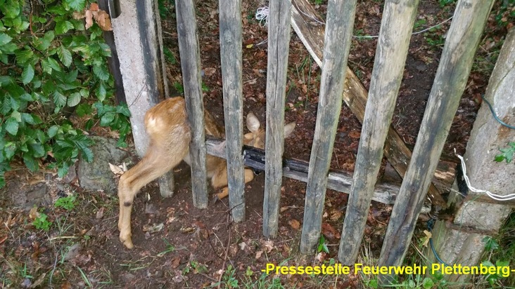 FW-PL: OT-Stadtmitte. Feuerwehr befreit Rehkitz aus Zwangslage