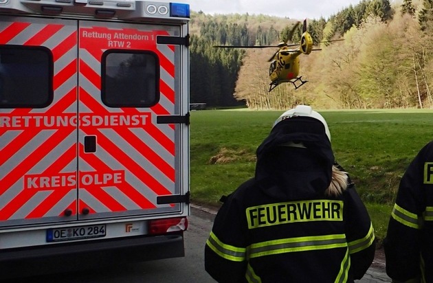 Gegen 08:00 Uhr wurde am heutigen Samstagmorgen die Plettenberger Feuerwehr mit dem Hilfeleistungslöschfahrzeug der hauptamtlichen Wachbereitschaft zur Erstversorgung, sowie Rettungswagen und Notarzt aus Attendorn zu einem medizinischen Notfall mit dem Stichwort "Verbrennung/Verbrühung" in den Ortsteil Lettmecke gerufen. Zu diesem Zeitpunkt waren beide Plettenberger Rettungswagen und der Notarzt bereits in Paralleleinsätzen gebunden. Es war ein Unfall, wie er vermutlich mehrfach passiert. Heiße Götterspeise wurde in eine Glasschale umgefüllt. Wenig später zerplatzte die Schale und der Inhalt traf einen 7-jährigen Jungen. Die Mutter reagierte sofort, entkleidete das Kind und kühlte die Verbrühungen bis zum Eintreffen der Rettungskräfte. Dennoch musste auf Grund der Schwere der Verbrühungen ein Rettungshubschrauber angefordert werden, um das Kind in einer entsprechend geeigneten Klinik weiterversorgen zu können. Rettungshubschrauber Christoph 25 aus Siegen landete kurz nach dem Ortsausgang Lettmecke auf einer großen Wiese in Nähe der Attendorner Straße. Während Start und Landung musste dafür die Straße kurzzeitig durch Polizei und Feuerwehr voll gesperrt werden. Nach einer Behandlung im Rettungswagen durch Attendorner Notarzt und dem Notarzt der Hubschrauberbesatzung wurde das verletzte Kind per Helikopter in eine Kinderklinik nach Siegen geflogen.