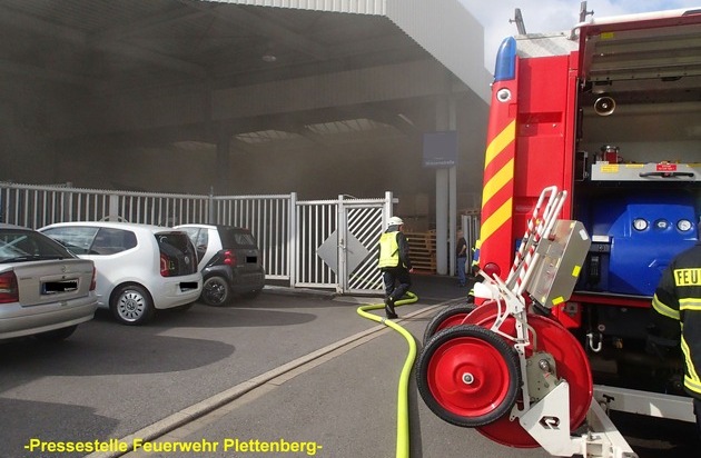 Gegen 08:40 Uhr lief heute Morgen in der Feuer- und Rettungsleitstelle des Märkischen Kreises ein Notruf über einen Brand in einem Industriebetrieb in der Plettenberger Wiesenstraße ein. Mit dem Stichwort "Brand im Gebäude" wurden daraufhin umgehend die Kräfte der hauptberuflichen Wache inklusive Führungsdienst, sowie der ehrenamtliche Löschzug 1, bestehend aus den Löschgruppen Stadtmitte und Landemert alarmiert. Vor Ort angekommen drang beißender Rauch aus einer Produktionshalle. Die Mitarbeiter konnten zuvor alle rechtzeitig das Gebäude verlassen. Eine Absauganlage stand in Vollbrand. Problem für die Einsatzkräfte, der Brand befand sich inmitten eines Maschinenkörpers, weshalb die vorgehenden Trupps unter schwerem Atemschutz zunächst Mühe hatten an den Brandherd zu gelangen. Mit Handwerkzeug und Schraubenschlüsseln ausgerüstet musste die Maschine in mühevoller Kleinarbeit unter den erschwerten Bedingungen einer starken Rauchentwicklung bei fast Nullsicht demontiert werden. Da ein erweiterter Atemschutzeinsatz zu erwarten war, wurde die Löschgruppe Holthausen durch die Einsatzleitung nachalarmiert. Erst nach gut über einer Stunde konnten mehrere Trupps den Brand durch Vornahme von Kohlenstoffdioxidlöschern und einem Löschrohr unter Kontrolle bringen. Was folgte waren Nachlöscharbeiten und eine Entrauchung der Produktionshallen durch Hochleistungslüfter der Feuerwehr. Erst nach über zwei Stunden konnte der Einsatz der Feuerwehr beendet werden und die Brandschützer in ihre Standorte zurückkehren. Zur genauen Brandursache und zum entstandenen Sachschaden kann die Feuerwehr keine Auskunft erteilen.