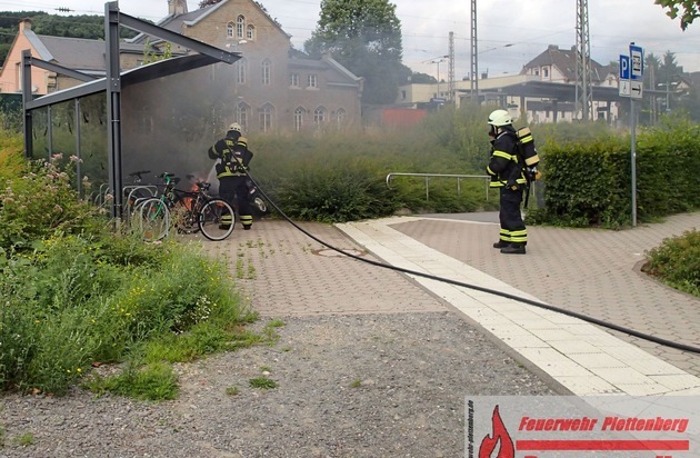 FW-PL: OT-Eiringhausen. Motorroller brannte in voller Ausdehnung. Zeugen haben auffällige Personen beobachtet.