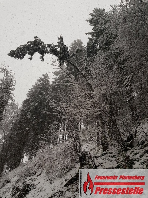 Gegen 15.00 Uhr rückte die Plettenberger Feuerwehr zu einem umgestürzten Baum auf dem Verbindungsweg zwischen Plettenberg-Tanneneck und Pasel aus. Bei Eintreffen der Feuerwehr, welche mit einem Hilfeleistungslöschfahrzeug der Feuer- und Rettungswache ausgerückt war, lag ein Baum, vermutlich umgestürzt durch Schneelast auf der Fahrbahn. Ein weiterer Baum, welcher ebenfalls schon bedrohlich über der Fahrbahn hing und der weiterhin andauernde Schneefall veranlasste die Feuerwehr dazu, unverzüglich den betroffenen Bereich zu verlassen. Aufgrund der schneeglatten Fahrbahn gelang dieses zunächst nicht, da das schwere Löschfahrzeug auf der abschüssigen und eisglatten Fahrbahn abzurutschen drohte. Der städtische Baubetriebshof wurde angefordert, um zum einen den Verbindungsweg komplett zu sperren, zum anderen mit einem Streufahrzeug das Löschfahrzeug wieder frei zu bekommen. Noch kurz vor Eintreffen des Streufahrzeuges krachte ca. 15 Meter vor dem Einsatzfahrzeug der Feuerwehr ein weiterer Baum auf die Fahrbahn. Genau an dieser Stelle hatte kurz zuvor noch ein PKW gestanden, zum Glück kam niemand zu Schaden, so ein Sprecher der Feuerwehr. Der Verbindungsweg zwischen Tanneneck und Pasel bleibt nun bis auf weiteres komplett gesperrt. Zu einem weiteren umgestürzten Baum auf der Straße Richtung Plettenberg-Sonneborn rückte parallel ein Löschfahrzeug der Löschgruppe Stadtmitte aus. Hier mussten die Einsatzkräfte jedoch nicht mehr tätig werden, der Baum war schon vor deren Eintreffen von der Straße beseitigt.