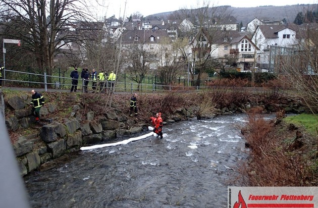 Mitarbeiter eines Industriebetriebes an der Herscheider Straße bemerkten am heutigen Donnerstagnachmittag gegen 14:30 Uhr einen Ölfilm auf dem nahegelegenen Elsegewässer. Die alarmierten Kräfte der Feuer- und Rettungswache erkannten bei ihrem Eintreffen einen deutlichen Ölfilm und stellten zudem Geruch von Heizöl im Bereich des Elsebaches fest. Die Einsatzkräfte versuchten als Sofortmaßnahme eine Ölsperre einzuziehen. Zudem wurde zur Unterstützung und für gegebenenfalls weitere Ölsperren der Rüstzug der Löschgruppe Ohle nachalarmiert. Aufgrund der hohen Fließgeschwindigkeit durch die Niederschläge in den letzten Wochen, zeigte der Versuch entsprechende Sperren einzuziehen jedoch keine effektive Wirkung, so ein Sprecher der Feuerwehr. Umgehend begannen Feuerwehr, Polizei, Ordnungsamt, untere Wasserbehörde sowie Mitarbeiter des Baubetriebshofes damit, nach der Ursache der nicht nachlassenden Ölverunreinigung zu suchen. Einsatzkräfte der Feuerwehr, ausgerüstet mit wasserdichten Anzügen, wateten hierzu von mehreren Seiten durch den Bach, um die Austrittsstelle, welche sich später im Bereich der Elsebrücke in der Zeppelinstraße befand, einzugrenzen. Wiederum begann im wahrsten Sinne die Suche nach der Nadel im Heuhaufen. Im Bereich der Häuser in Nähe zum Bach, lag deutlich Heizölgeruch in der Luft. Einsatzkräfte von Polizei und Feuerwehr untersuchten insbesondere Keller der nahegelegenen Wohnhäuser und Betriebe mit Heizöltanks nach einer möglichen Havarie. Erst nach gut zwei Stunden intensivster Untersuchung des Kanalsystems unter Zuhilfenahme einer Kamera der Kanalkolonne des Baubetriebshofes, führte die Spur zu einem kleineren Industriebetrieb in der Zeppelinstraße. Hier war es aus noch nicht geklärter Ursache zu einem Defekt an der Heizöltankanlage gekommen. Der Betreiber hatte zwar bereits eigene Maßnahmen mit Bindemittel eingeleitet, dennoch gelangten unbestimmte Mengen von Heizöl in das Kanalsystem, welches durch ein eingesetztes Rohrdichtdruckluftkissen der Feuerwehr vorerst abgedichtet werden konnte. Noch im Verlauf des Abends soll ein hinzugerufenes Spezialunternehmen für Ölschäden mit umfangreichen Reinigungsmaßnahmen beginnen. Die Feuerwehr beendete nach rund drei Stunden ihren Einsatz. Polizei und untere Wasserbehörde haben die Ermittlungen zur genauen Havarieursache aufgenommen. Zur Höhe des entstandenen Sachschadens kann die Feuerwehr keine Auskunft erteilen.