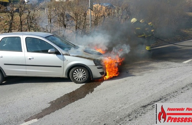 FW-PL: OT-Eiringhausen. Plötzlich schlugen Flammen aus dem Motorraum. Feuerwehr löschte Fahrzeugbrand
