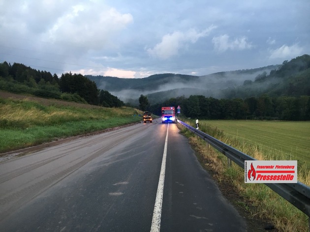 FW-PL: Verschlammung nach Starkregen sorgte für Vollsperrung der B236 im OT-Pasel